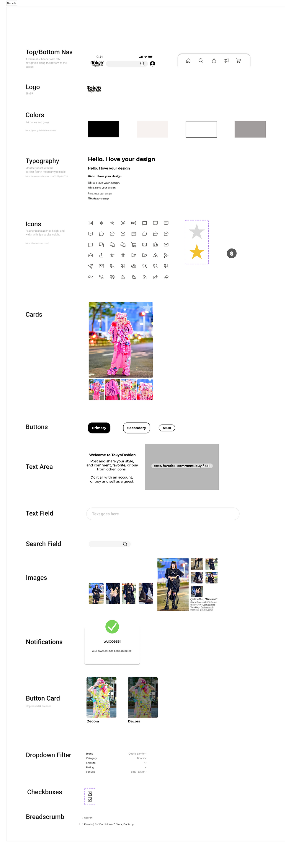 For the User flow we wanted to highlight the shopping feature that was to be added to the revamped application. We began to outline TokyoFashion’s new navigation by illustrating our user adding an item to their shopping cart for purchase by using the search bar and filters.